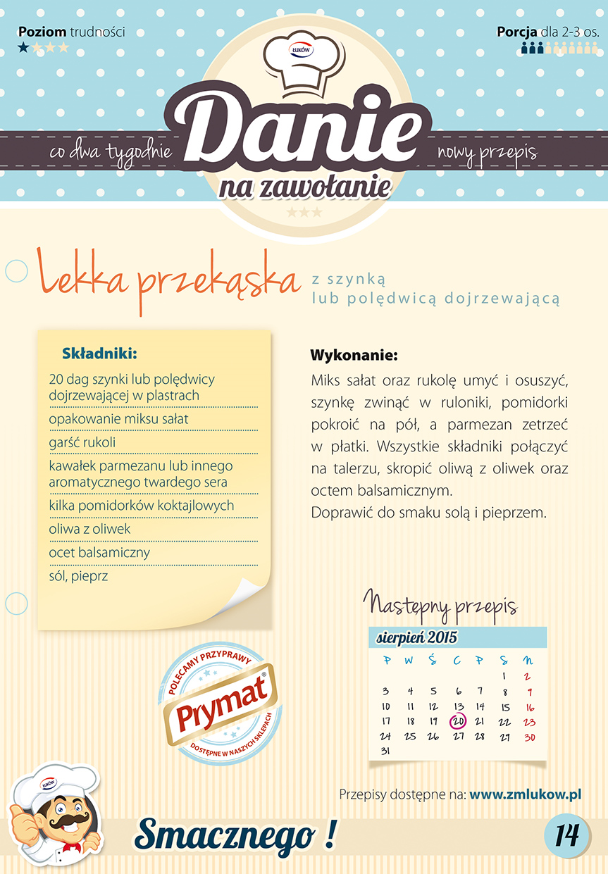 Lekka przekąska z wędliną dojrzewającą w roli głównej. Pamiętaj, że główny składnik dania oferowany jest w promocyjnej cenie! Zapraszamy.