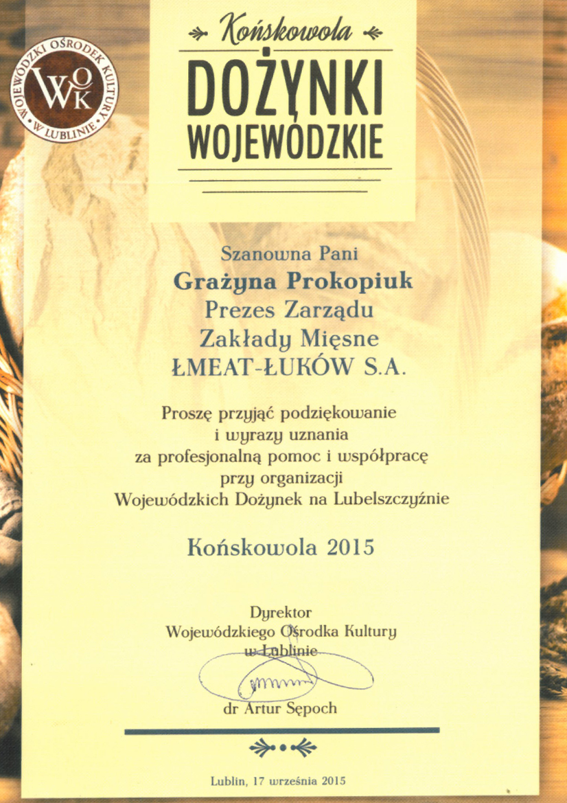 Starostami tegorocznego święta zakończenia zbiorów byli Barbara Wierzchowska z powiatu tomaszowskiego oraz Grzegorz Kocielnik z powiatu łukowskiego.