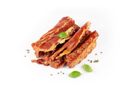 By sprostać oczekiwaniom konsumentów nasze produkty oferowane są w przeróżnych opakowaniach i gramaturach. Wędliny oferowane są w formie plastrów zapakowanych w opakowania o gramaturze 100g, dzięki czemu długo zachowują świeżość i są niezwykle wygodne w użyciu. W szczególności polecamy wyborne Pastrami premium przygotowane z udźca wołowego czy Rostbef luksusowy.