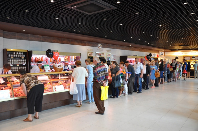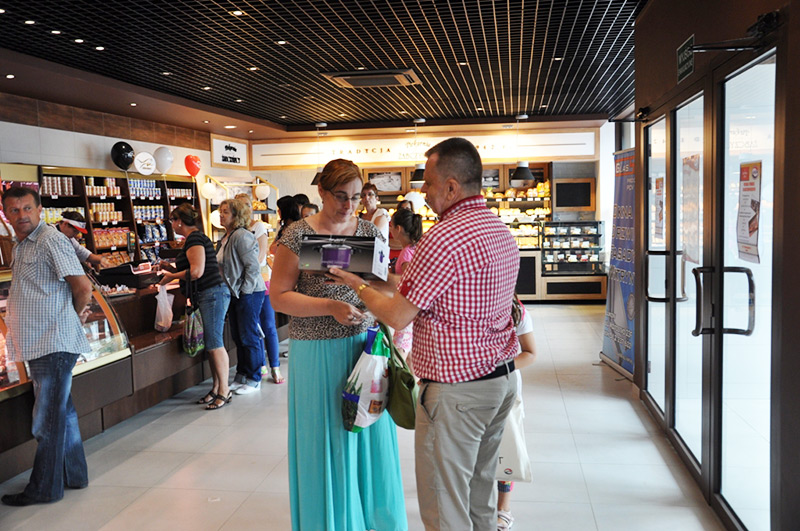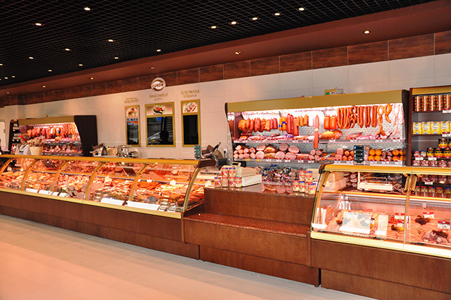 Wyremontowane delikatesy mięsne przy ul. Przemysłowej to niezwykle elegancki, dopracowany w najmniejszym szczególe sklep przyjazny Klientowi – innowacyjne lady chłodnicze najwyższej klasy doskonale eksponują mięso i wędliny, duży zamontowany pod sufitem 55″ telewizor informuje o nowych produktach i aktualnych promocjach. Oprócz tego w sklepie zorganizowano kącik dziecięcy, by umilić najmłodszym czas, a także stworzono mini-galerię przypominającą bogatą historię Zakładów.