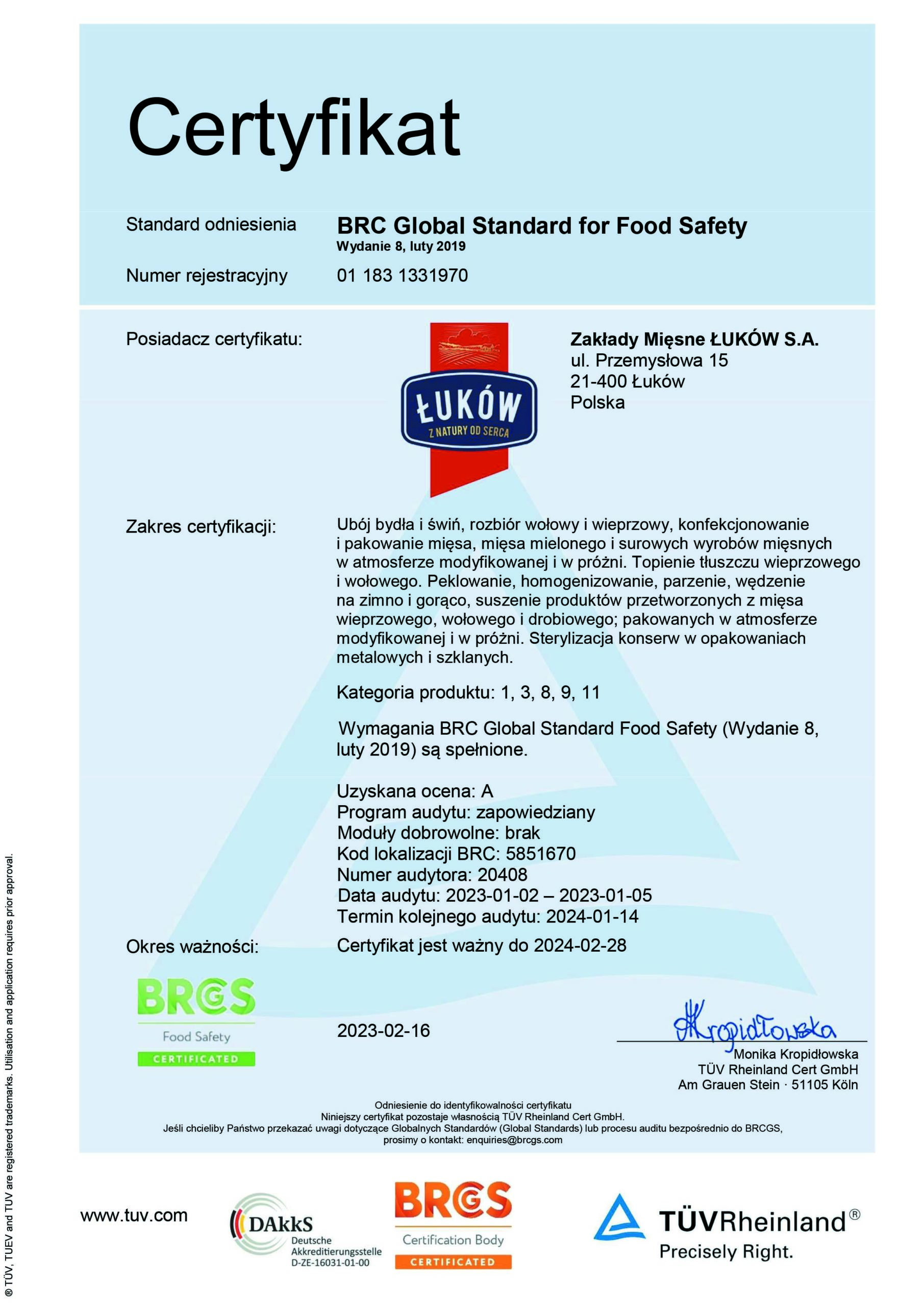 Wysoką jakość wyrobów z Łukowa potwierdzają certyfikaty: