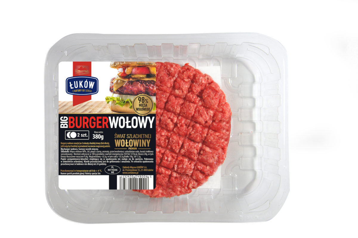 Sekretem wyjątkowego smaku burgerów wołowych jest najwyższej jakości wołowina oraz optymalne rozdrobnienie zapewniające odpowiednią strukturę mięsa. Przyprawione solą i pieprzem. Burgery przeznaczone do przygotowania na patelni bądź na grillu.