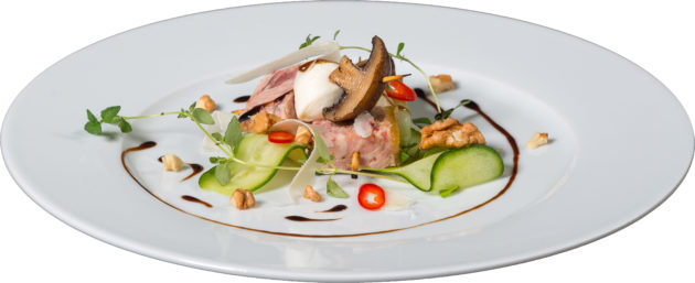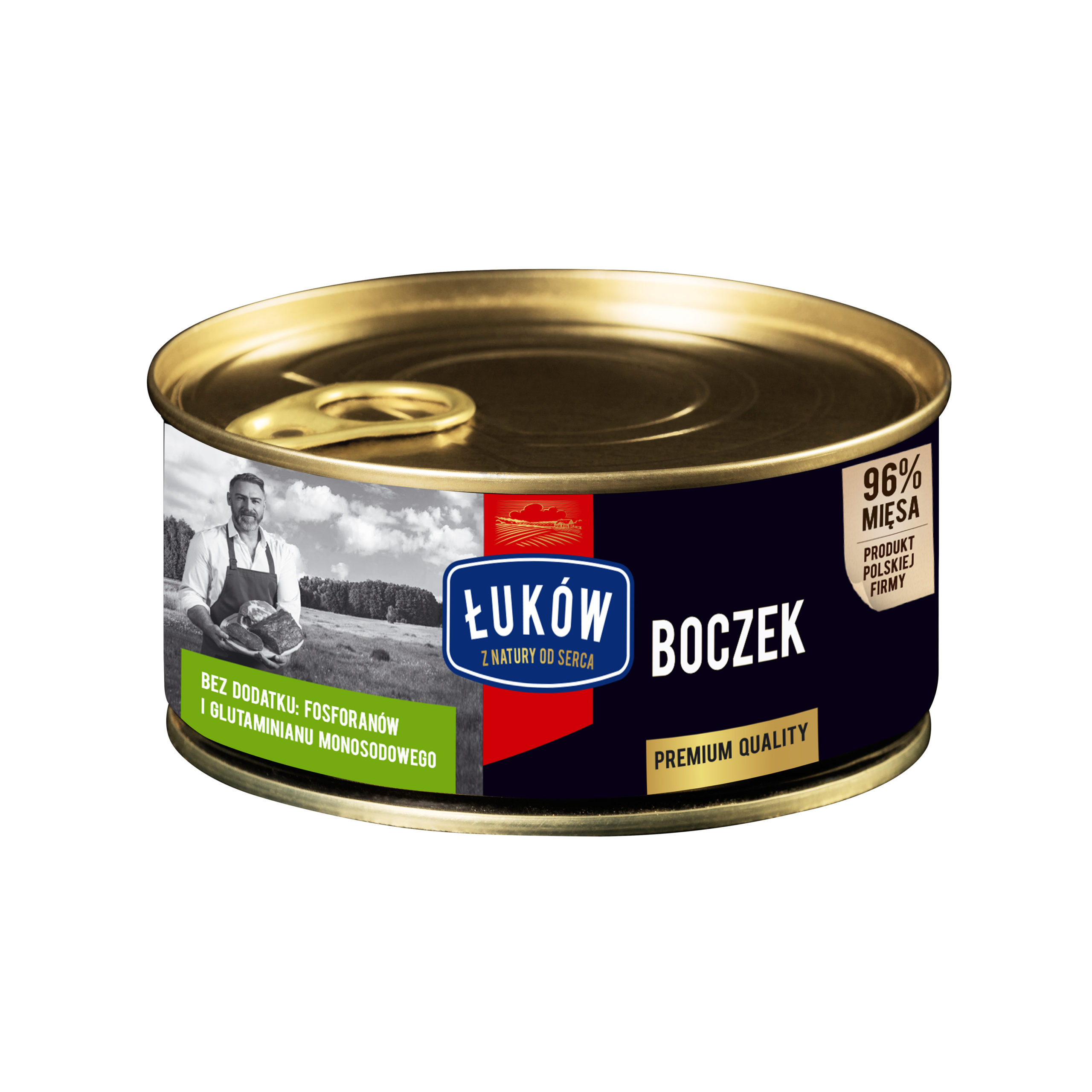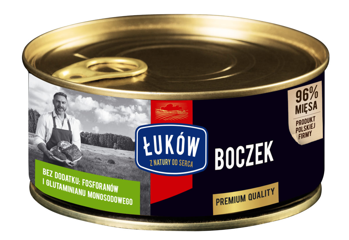 Składniki: Boczek wieprzowy (77%), mięso wieprzowe (19%), sól, białko wieprzowe, skrobia ryżowa, cebula, czosnek, pieprz czarny, substancja konserwująca: azotyn sodu.