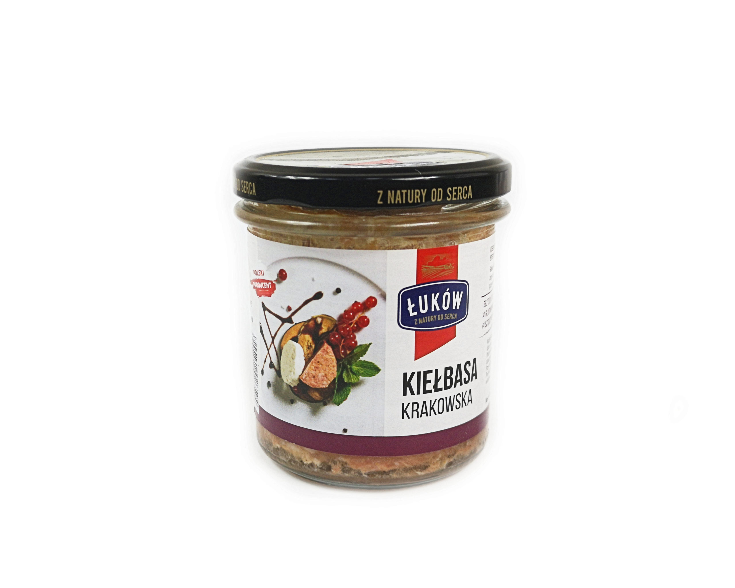 Składniki: Mięso wieprzowe (83%), woda, sól, przyprawy, ekstrakty przypraw, substancja zagęszczająca: wodorosty morskie z gatunku Eucheuma; stabilizatory: trifosforany; przeciwutleniacz: izoaskorbinian sodu; substancja konserwująca: azotyn sodu.