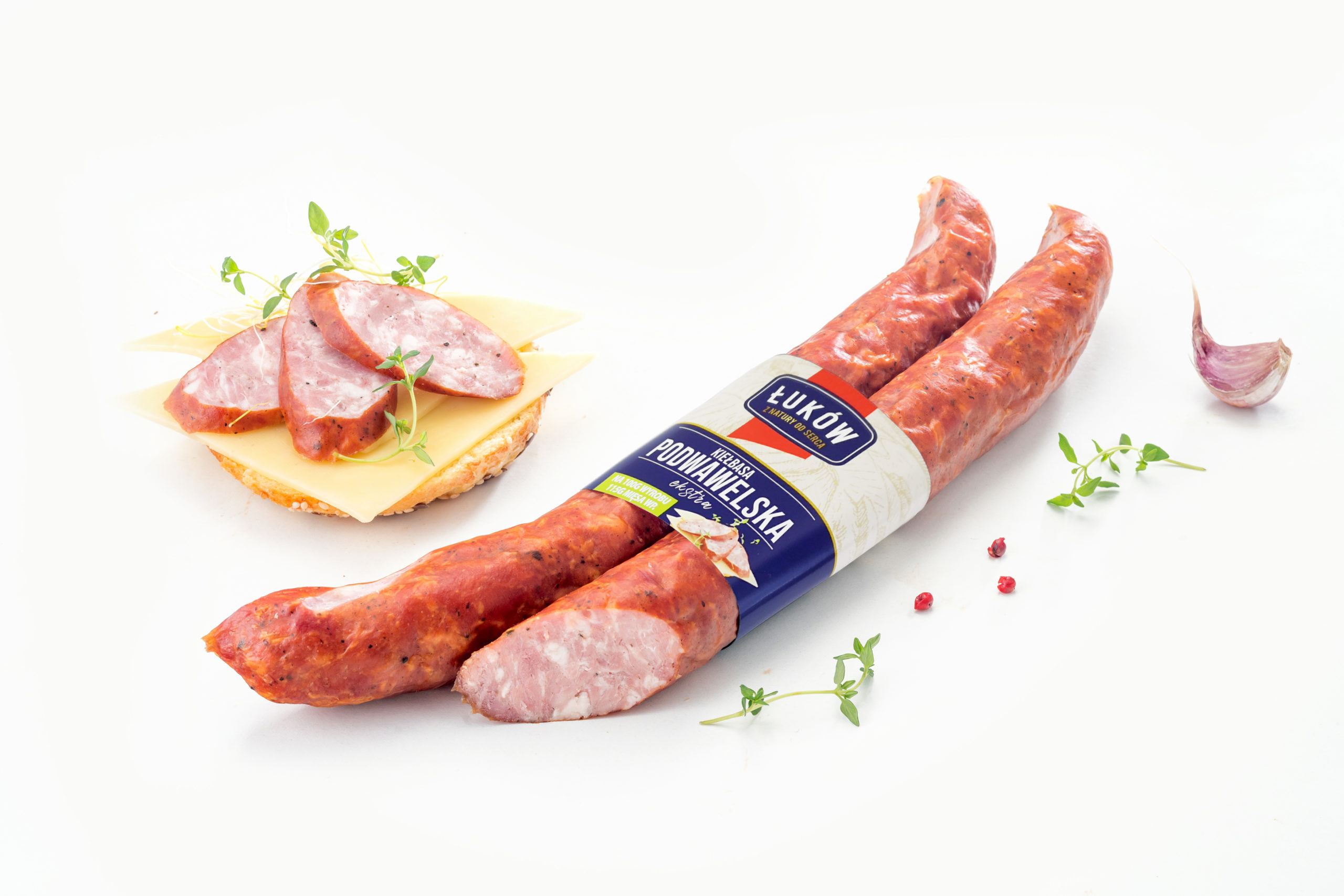 Kiełbasa podwawelska ekstra swój szczególny smak zawdzięcza podsuszaniu oraz obecności wyrazistych przypraw, takich jak sól pieprz i czosnek. Tradycyjna kiełbasa o wysokiej mięsności, średnio rozdrobniona.