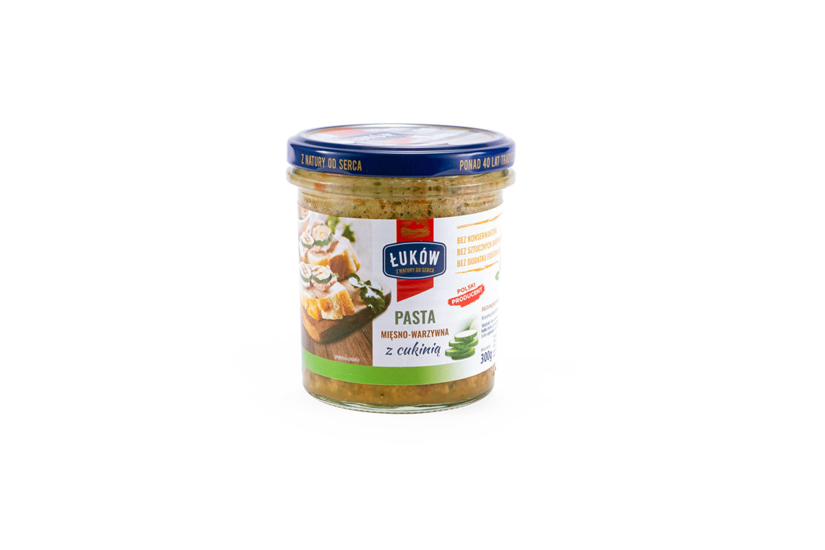 Przepyszna pasta mięsno-warzywna stworzona z najwyższej jakości składników. Jest idealnym dodatkiem do wytrawnych kanapek i przekąsek. Pożywne mięso wieprzowe z połączeniu z łagodną w smaku cukinią urozmaici nawet najprostszy posiłek.