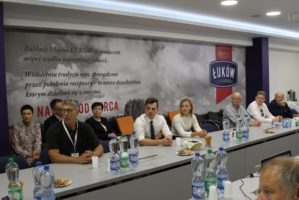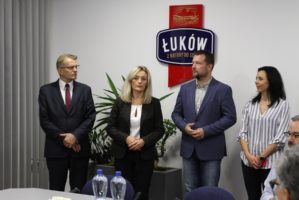 Uczestnicy kongresu zwiedzili Zakłady Mięsne Łuków. Historię i ofertę zakładu przedstawiła Pani Ewa Ponikowska – członek zarządu. Następnie zostały wyświetlone filmy przedstawiające działalność dwóch zakładów produkcyjnych: zakładu produkcyjnego w Śmiłowie oraz w siedzibie spółki w Łukowie. Właśnie tutaj odwiedzający mogli zobaczyć jak wygląda produkcja konserw, którą pokazała Pani Agnieszka Węgrzynowicz – Dyrektor Produkcji. Wszyscy byli bardzo zaskoczeni rozwiniętą technologią oraz jakością naszych wędlin, które mogli skosztować podczas wizyty. W spotkaniu z przedsiębiorcami ze Stanów Zjednoczonych uczestniczył również Burmistrz Łukowa Pan Dariusz Szustek, który przybliżył potencjał gospodarczy Łukowa.