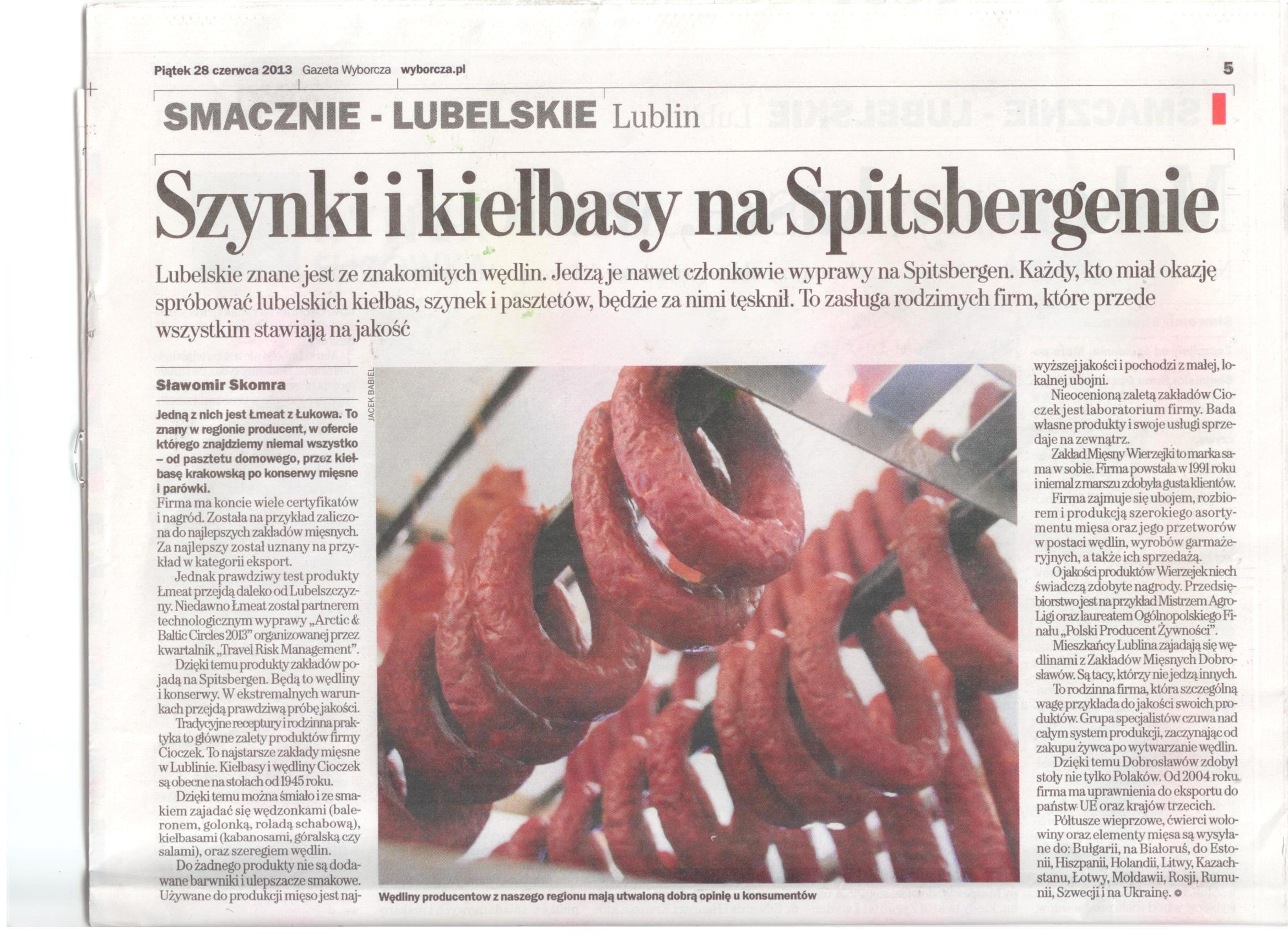 Zakłady Mięsne ŁUKÓW S.A. otrzymały tytuł partnera technologicznego wyprawy „Arctic & Baltic Circles 2013” organizowanej przez kwartalnik „Travel Risk Management”. Zakłady Mięsne ŁUKÓW S.A. przekazały uczestnikom wyprawy produkty mięsne – wędliny i konserwy, które wspomogą realizację celu przedsięwzięcia i dowiodą, że wyroby Zakładów Mięsnych Łmeat-Łuków S.A. sprawdzają się w każdych, nawet ekstremalnych warunkach.